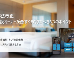 チェックイン対応をしながら、電話が鳴る。外国人ゲストへの説明に手間取っている間に、次のお客様が到着する——そんな日常を送りながら、「法改正の対応」まで考える余裕はなかなかありません。 ただ、2025年前後に宿泊業を直撃する制度変更が3つ重なっています。「知らなかった」では済まないものも含まれているため、この記事で一度まとめて確認しておいてください。 ① 「うちの建物、大丈夫かな」と思ったことはありますか——建築基準法の改正 2025年から、ホテル・旅館・民泊などを対象とした防火設備・避難経路・耐震性能に関する基準が見直されました。これまで小規模施設には適用が緩やかだった要件が、より広い範囲に及ぶようになっています。 「古い建物だけど、今まで何も言われなかったから大丈夫だろう」——そう思っているオーナーさんほど、一度確認しておく必要があります。 📌 築年数が古い建物をそのまま使っている 昭和・平成初期に建てられた施設は、現行の防火・避難基準を満たしていない可能性があります。「今まで問題なかった」は、現行基準に適合しているとは別の話です。 📌 戸建てや集合住宅を民泊・ゲストハウスに転用している 「もともと住んでいた家を民泊にした」「空き物件を買ってリノベした」——こうしたケースでは、用途変更に伴う建築確認や設備改修が必要になる場合があります。 📌 定期報告を出しているかどうか、正直よくわからない 特定の用途・規模の宿泊施設には、建物の安全性に関する定期調査・報告の義務があります。「出していたかどうか記憶があいまい」という方は、自治体か建築士に確認を。 まず取り組むこと: 「うちは当てはまる?」を建築士に聞くだけでOKです。対応が必要かどうかを確認するだけでも、十分な一歩になります。 ② 「うちの地域はまだ先の話」本当にそうでしょうか——宿泊税 東京・大阪・京都ではすでに宿泊税が導入されています。「うちは地方だから関係ない」と思っているオーナーさんも多いですが、2026年中に全国124自治体での導入が見込まれており、今は対象外の地域も数年後には対象になる可能性があります。 宿泊施設の役割は「お客様から税を預かり、自治体に納める」こと。チェックイン時の徴収から月次の申告・納付まで、現場に新たな実務が加わります。いざ導入されてから慌てないよう、今のうちに仕組みを理解しておくことが重要です。 宿泊税の実務の詳細と、MujInnを使った自動化の方法については、専門記事で詳しく解説しています。 [blogcard url="https://mujinn.com/column/accommodation-tax-automation/"] 沖縄の宿泊施設の方へ: 沖縄県は2026年後半に宿泊税を導入予定。現在、システム対応にかかる費用を手厚く支援する補助金制度が動き始めています。詳しくは後半でご紹介します。 ③ 「外国人のお客様、なんとか対応してるけど…」——本人確認の義務 インバウンド需要の回復とともに、外国人ゲストが増えている施設は多いはずです。ただ、対応できているかどうかは別の話。旅館業法では、外国人宿泊者の国籍・旅券番号の確認・記録が義務付けられています。 「一応やってはいるけど、正直追いついていない」「紙に書いてもらってるけど、後から確認できる状態かどうか…」——そんな状況のまま運営を続けている施設は少なくありません。 よくある現場の状況 フロントスタッフがパスポートを目視確認し、手書きまたはコピーで記録している 繁忙期は確認作業が後回しになり、気づいたら記録が漏れていた 紙やバラバラのファイルで管理していて、後から探しても見つからない 外国語でのやり取りが発生し、特定のスタッフに負担が集中している 「今まで何も言われなかったから」は、義務を果たしていることにはなりません。 システムを入れると、どう変わるか ゲスト自身がセルフチェックイン端末でパスポートをスキャン・登録 データはPMSに自動保存され、いつでも検索・確認できる状態に 多言語対応の画面案内で、スタッフが介在しなくても手続きが完結 宿泊台帳への自動記録で、法令に準拠した管理体制を無理なく維持 義務を果たしながら、スタッフの手間も減らせる——この両立が、導入の大きなメリットです。 「でも、今の運営で手一杯で…」というオーナーさんへ 法改正への対応が必要なのはわかっていても、日々の運営で精一杯なのが現実です。スタッフを増やす余裕もなく、新しい業務を追加するのは難しい——そんな状況のオーナーさんに知ってほしいのが、システムで一気にまとめて対応できるという選択肢です。 MujInnのPMSとセルフチェックインを組み合わせることで、これまで手作業でやってきた業務が自動化されます。 現状 MujInnを入れると 宿泊税が始まったら、誰が計算・徴収するか決まっていない 自動計算・自動徴収・申告データ出力まで完結 外国人ゲストのパスポート確認、なんとなく手作業でやっている 端末スキャン→PMSへ自動保存・いつでも