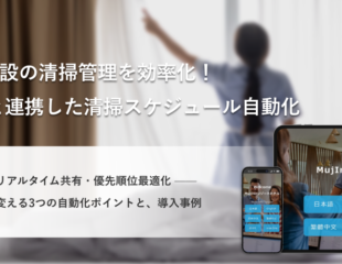 「清掃済みの部屋がどこか分からない」「連絡ミスでチェックインが遅れる」「人手不足で清掃品質が保てない」――。 こうした悩みを抱えるホテル・旅館・民泊の運営担当者は少なくありません。 本記事では、PMS(ホテル管理システム)と連携した清掃スケジュール自動化の仕組みとメリットを、導入事例とともに解説します。 宿泊施設の清掃管理でよくある3つの課題 人手不足が進む宿泊業界において、清掃管理は運営効率と顧客満足度に直結する重要業務です。多くの施設で非効率な管理が残っており、以下の課題が顕在化しています。 情報共有のタイムラグでチェックイン遅延が発生 清掃スタッフとフロント間の情報伝達に時間がかかると、客室アサインが遅れゲストを待たせる事態に。特に繁忙期やインバウンド対応では、わずかな遅延が顧客満足度の低下に直結します。 紙や口頭管理による伝達ミス・属人化 紙のチェックシートや口頭・電話での共有に頼る施設では、以下の問題が起こりがちです。 担当者によって清掃の質にばらつきが出る 伝達ミスによる対応漏れ(忘れ物・設備不良など) 新人スタッフの教育コストが高い フロントへの電話問い合わせが集中し、他業務に支障 人手不足で清掃品質と効率の両立が困難 宿泊業の有効求人倍率は全産業平均を上回り、限られた人員で稼働率を維持することが経営課題に。少人数でも質の高い清掃を実現するには、業務の標準化と効率化が不可欠です。 PMSと連携した清掃スケジュール自動化とは こうした課題を根本から解決するのが、PMS(Property Management System:ホテル管理システム)と連携した清掃管理システムです。 PMS連携型清掃管理の仕組み PMSは予約・売上・客室情報を一元管理するシステム。ここに清掃管理機能が統合されることで、以下のような自動化が実現します。 予約情報と清掃スケジュールの自動連動 チェックアウト時刻にあわせて清掃タスクを自動生成 清掃ステータスのリアルタイム反映 スタッフがスマホで更新した情報が即座にフロント画面へ 客室稼働状況に応じた清掃優先順位の最適化 早めのチェックインリクエストにも柔軟対応 自動化で変わる業務フロー 従来の電話・口頭連絡は不要となり、全員が同じ管理画面で最新情報を共有できるように。情報伝達の手間が大幅に削減され、ゲスト対応や運営判断にリソースを集中できます。 清掃スケジュール自動化の4つのメリット リアルタイムで「見える化」 シームレス連携 忘れ物・設備不良の一元管理 スマートフォンで現場からのリアルタイム操作 リアルタイムで清掃状況を「見える化」 清掃スタッフがスマホで開始・完了を登録すると、フロント画面に即時反映。「どの部屋がいつチェックイン可能か」が一目で分かり、ゲストを待たせずに客室を提供できます。 フロント業務と清掃業務のシームレス連携 予約管理・チェックイン・清掃ステータスが同一システム上で完結するため、業務間の引き継ぎに発生していたコミュニケーションコストがゼロに。全体の業務効率が飛躍的に向上します。 忘れ物・設備不良の一元管理で対応漏れゼロ 清掃管理システムは、進捗だけでなく以下の付随情報も一画面で管理できます。 忘れ物(登録日・品名・貴重品区分・返却状況) 設備不良(故障内容・修繕進捗) 清掃担当の割当状況 情報が散逸しないため、メンテナンスや返却対応の漏れを防げるのが大きな利点です。 スマートフォンで現場からすぐ操作可能 移動中や現場から直接ステータスを更新できるため、「清掃後にフロントへ戻って報告」という二度手間がなくなります。クラウド型なら複数施設の一元管理にも対応可能です。 清掃管理システム導入で得られる具体的な効果 清掃スケジュールの自動化は、業務の省力化だけでなく経営指標にも直接インパクトをもたらします。 効果領域 具体的な変化 業務効率 紙・電話による連絡業務を削減。フロント問い合わせ件数が大幅減 コスト削減 人件費最適化、清掃時間の短縮、教育コスト低減 顧客満足度 チェックインの待ち時間短縮、清掃品質の安定化 人手不足対応 少人数でも高品質なサービス提供が可能、属人化を解消 MujInn公式サイトによれば、セルフチェックインと連携した無人運営で、フロント対応時間を最大90%以上、管理費を50%以上削減した実績も。清掃管理の効率化は、ホテルDXの重要なピースです。 MujInnのルームインジケーターで実現する清掃管理DX PMS連携型の清掃管理システムとして注目されているのが、スマートフロント「MujInn(ムジン)」のルームインジケーター(客室清掃管理システム)です。セルフチェックインと統合された総合PMSの一部として、現場で使える機能を多数備えています。 月額費用は10,000円(税抜)からと手頃。紙・口頭管理から脱却したい施設に最適です。 ルームインジケーターの主な機能 清掃状況のリアルタイム共有 スタッフがスマホから開始・完了を登録、フロントへ即時反映 客室管理画面 全客室の宿泊状況