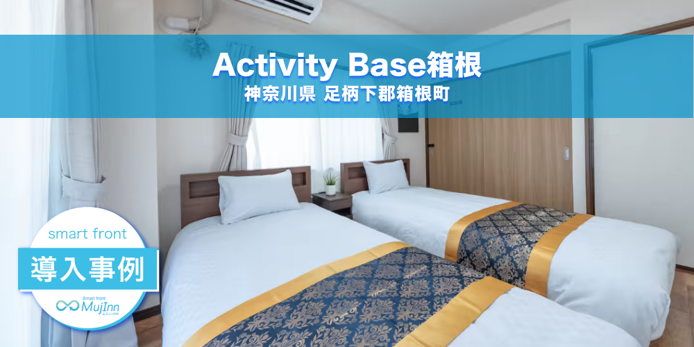 Activity Base箱根ではMujInnを導入し、セルフチェックイン端末とRemoteLockを活用。ビデオチャットと24時間コールセンターで無人でも安心の宿泊体験を提供しています。